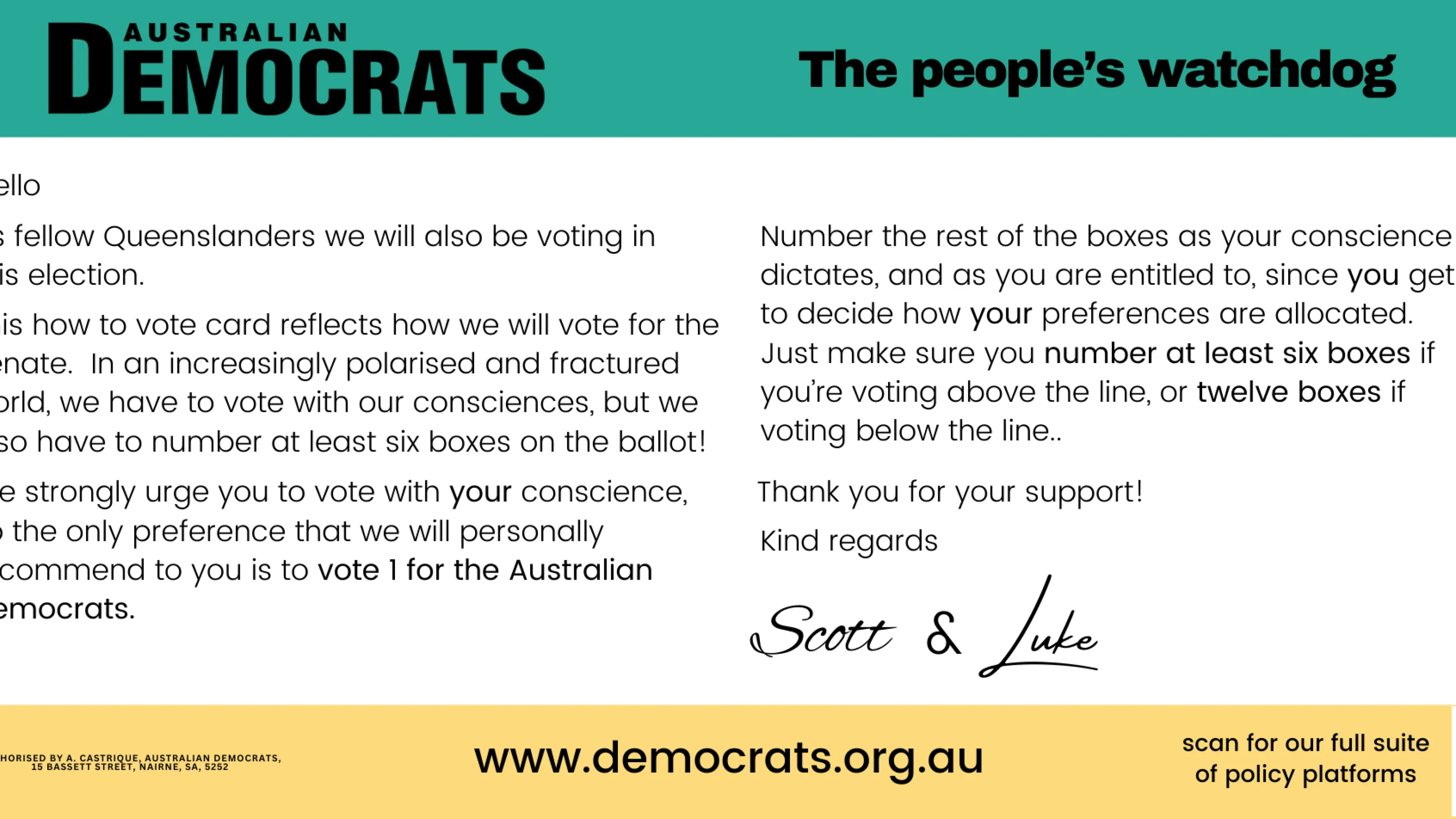How to vote Australian Democrats